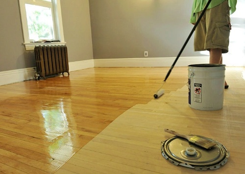Заканчивать проведение ремонта паркета нужно циклеванием всей поверхности пола в комнате, чтобы не было разноцветных пятен. После этого пол шлифуется и покрывается лаком, для чего используется поролоновый (не ворсистый!) валик до образования ровного слоя.